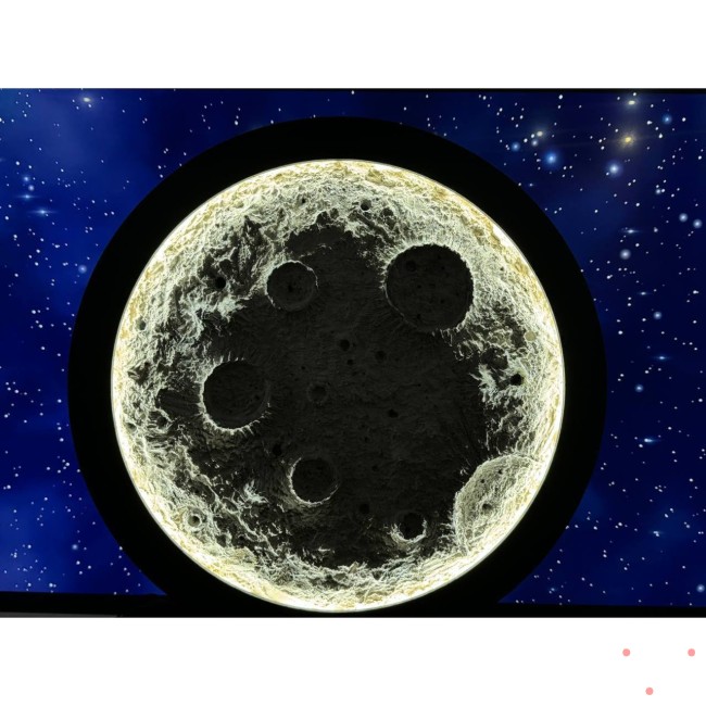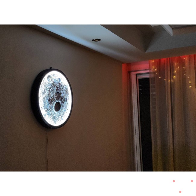 تابلو شبخواب طرح ماه برجسته که دارای ریموت با قابلیت کنترل شدت نور در حالت های مختلف می باشد و همچنین فرم مگنتی آن که باعث تعویض راحت نور می باشدقطر تابلو 60 سانتی متر می باشد