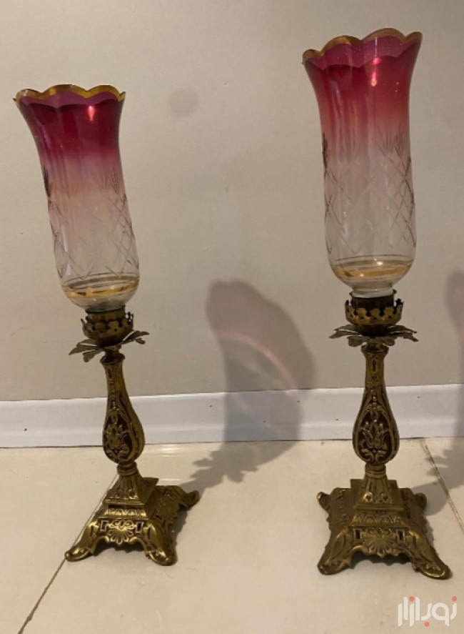 شمعدان لاله بلور آبطلا پایه برنز