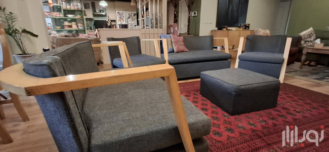 مبلمان راحتی چوب و پارچه، چوب روسی، همراه یک عدد پاف