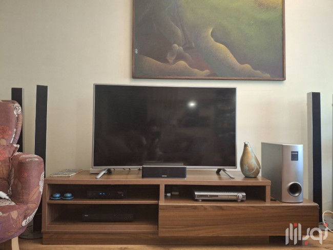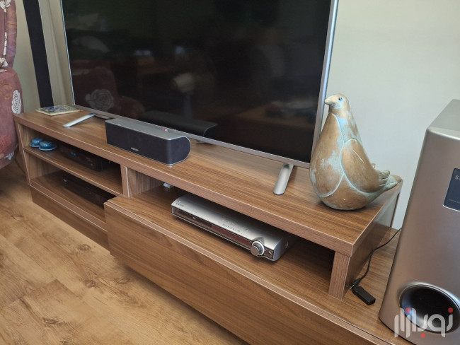 میز زیر تلویزیون ام دی اف، دو طبقه،دارای یک کشو بزرگ