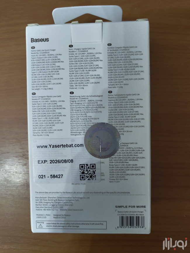 شارژر بیسوس 65 واتی شامل سه پورت که ۲ پورت آن تایپ سی (Type c) و ۱ پورت تایپ A به صورت همزمان قابل استقاده است بسته با دستگاه متصل شده تقسیم وات توسط شارژر انجام میشه آکبند پلمپ دارای گارانتی ۱ سال و سه ماهه رنگ شارژر مشکی بدون سیم فقط کلکیدارای فناوری شارژ سریع: QC3.0 و PD3.0 و PPSدارای تکنولوژی GaN2 Lite (پخش خرارت عالی)مجهز به دوشاخه سازگار با پریزهای ایران
