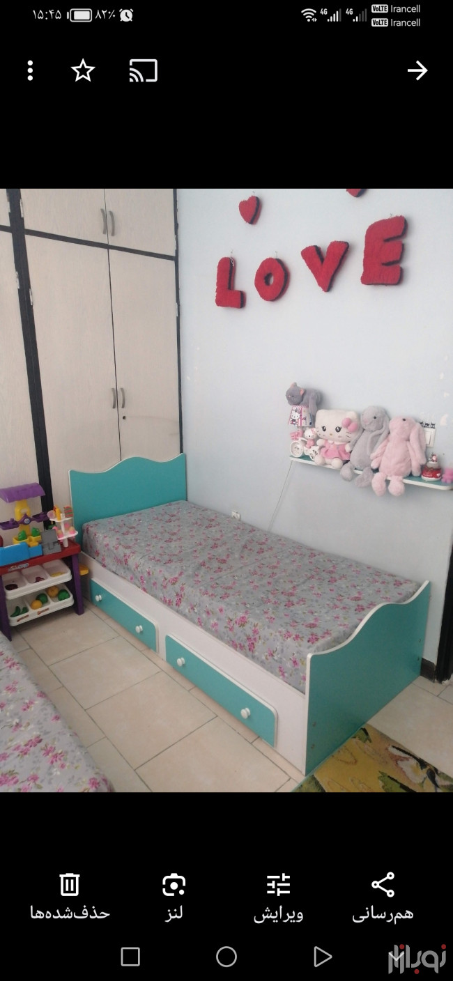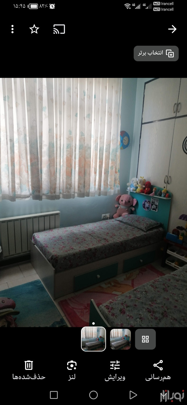 دو عدد تخت نوجوان ام دی اف خارجی همراه کفی تخت و تشک و دو کشو زیرش هر تخت سه تومن و یک عدد کمد لباس که دودتا کشو داره یکی از کشوها ریل میخواد دو تومنفرش یک در یک و نیم و پرده ست ۲۰۰*۱۸۵ با هم یه تومن
