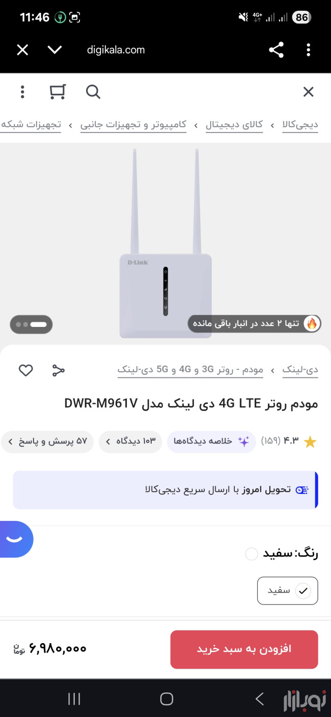 مودم روتر دارای دو سال گارانتی. وزن (گرم) 400 تعداد آنتن 4 نوع آنتن دو آنتن خارجی LTE, دو آنتن خارجی WiFi نوع اتصال با سیم, بی سیم رابط ها پورت LAN, پورت USB, پورت WAN/LAN, شیار سیم کارت کلیدها On/Off, Reset, WPS شبکههای قابل پشتیبانی 2G, 3G, 4G, 5G, TD-LTE سرعت انتقال دادهها در حالت HT20 برابر با 144 مگابیت بر ثانیه, در حالت HT40 برابر با 300 مگابیت بر ثانیه, در حالت VHT80 تا 867 مگابیت بر ثانیه استانداردهای بی سیم IEEE 802.11b/g/n باندهای قابل پشتیبانی FDD LTE: B1/B3/B5/B7/B8/B20, GSM: 85**************0, TDD LTE: B38/B40/B41, WCDMA: B1/5/8 منبع تغذیه آداپتور 12V با شدت جریان 1.5A محدوده فرکانس 2.4 گیگاهرتز گواهی نامه ها CCC, CE, FCC, RoHS, UL برند دی لینک (D-Link)